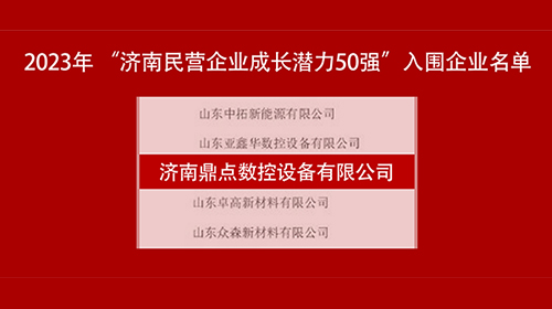 2023-09-23近日,濟南市民營經(jīng)濟發(fā)展局發(fā)布“濟南民營企業(yè)成長潛力50強”名單。濟南鼎點數(shù)控設備有限公司(以下簡稱“鼎點激光”)憑借高速發(fā)展,創(chuàng)新潛能等方面的優(yōu)異表現(xiàn)成功入圍“濟南民營企業(yè)成長潛力50強”榜單。